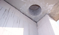 Betonbohrungen, zum Beispiel, für Abwasserrohre durch Betondecken oder Bodenplatten.