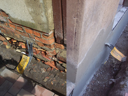 Wir erarbeiteten die Sockelsanierung mit wasserabweisendem Leichtsockelputz, Armierung und Feuchtigkeitssperre